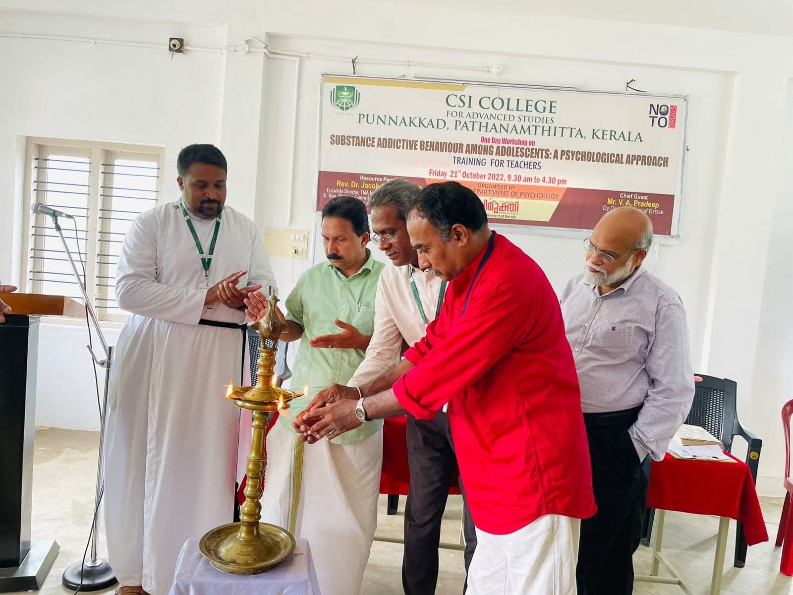 The chief guest of the programme was Mr. V.A. Pradeep, Deputy Commissioner of Excise. The Anti-Narcotic Club of the college was inaugurated by Adv. Jose Kaleekal, Vimukthi, Coordinator, Pathanamthitta. Mr. Binu Varghese, Civil Excise Officer, Excise Enforcement and Anti-narcotic Special Squad, Pathanamthitta, delivered felicitation. Bursar Rev. Varkey Thomas and Principal Dr. Roy Sam Daniel were present throughout. The resource person of the Technical Session was Rev. Jacob Cherian.