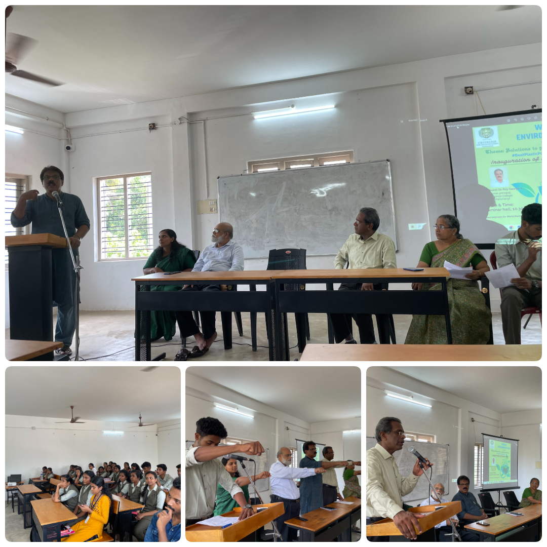 In connection with World Environment Day, the Department of Food Technology and Quality Assurance, CSI College for Advanced Studies, conducted the inauguration of the nature club and environment day celebrations on 5th June 2023. Dr. Roy George K, Former Principal of St. Thomas College, Kozhencherry, was the chief guest. The esteemed chief guest was welcomed by the Head of the department and programme co-ordinator, Dr. Jubi Jacob. Our principal, Dr. Roy Sam Daniel, was welcomed on the dais with immense respect and cordial greetings. The chief guest, Dr. Roy George,K was welcomed to inaugurate the Nature club of college and to deliver the keynote address. The keynote speech was based on the topic “Solutions to plastic pollution”.