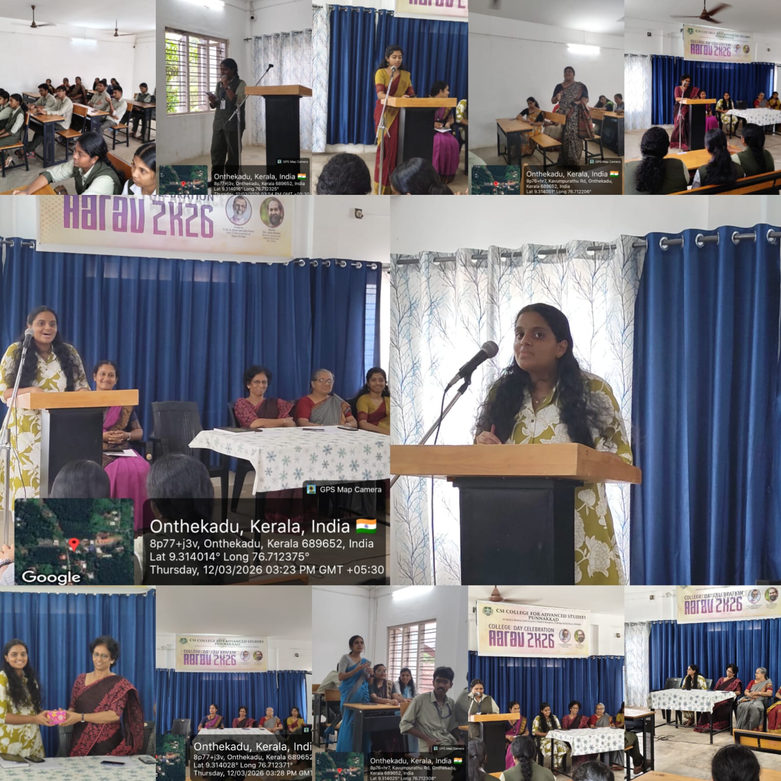 International Women’s Day was celebrated by the Voice of Women in association with IQAC with the theme “Right, Justice and Action for All Women and Girls.” The programme aimed to create awareness about women’s rights, equality, and empowerment in society. The session featured Adv. Amitha Sara Abet as the resource person, who delivered an insightful talk highlighting the importance of legal awareness, gender justice, and collective action to ensure equal opportunities and protection for women and girls. The programme encouraged students to understand their rights and actively participate in promoting a just and inclusive society.