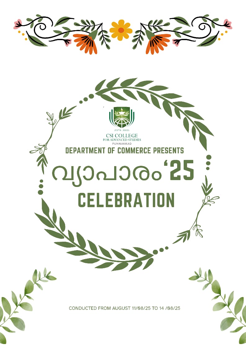 Commerce Department Fest 2025 We are excited to announce that the Department of Commerce, CSI College for Advanced Studies, Punnakkad, is hosting its Commerce Fest from 11th to 14th August 2025