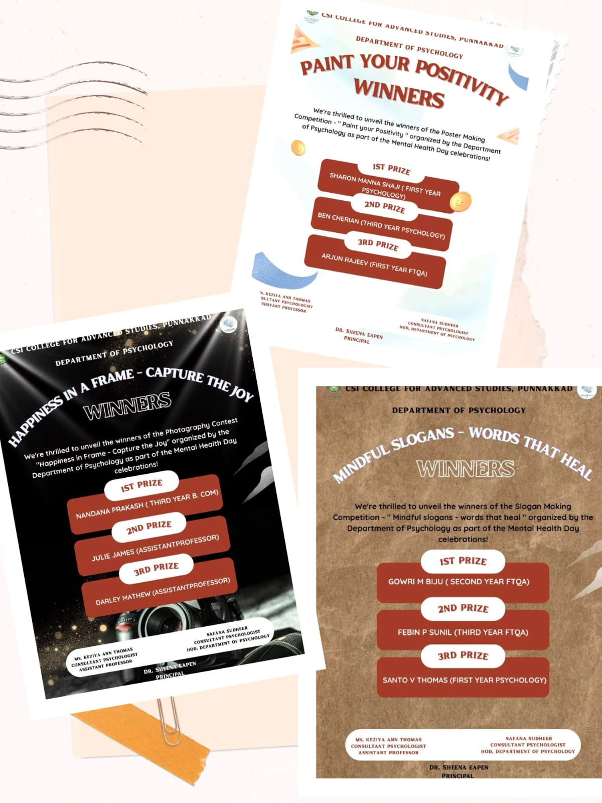 The Department of Psychology, CSI College for Advanced Studies, organized a series of competitions in connection with Mental Health Week.